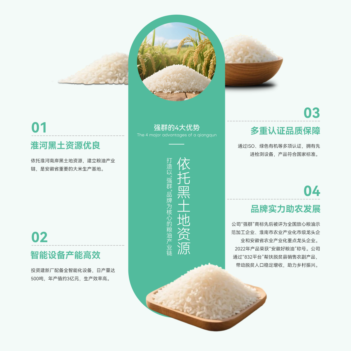 壽縣強(qiáng)群糧油貿(mào)易有限公司成立于2011年,座落在淮南市壽縣澗溝鎮(zhèn),是一家集種植、加工、收儲(chǔ)、銷售于一體、以生產(chǎn)中、高檔質(zhì)優(yōu)、特色類大米為主的綜合性企業(yè)。公司依托準(zhǔn)河南岸的黑土地資源,打造以“強(qiáng)群”品牌為核心的糧油產(chǎn)業(yè)鏈,是安徽省重要的大米生產(chǎn)基地。   為響應(yīng)市場增長需求,公司2021年啟動(dòng)二期擴(kuò)產(chǎn)工程,其中新生產(chǎn)廠區(qū)建設(shè)投入資金近億元,建設(shè)現(xiàn)代化新生產(chǎn)線,總占地面積約4000...